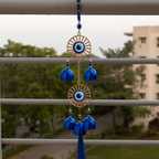 This wind chime features 5 glossy blue metal bells that produce a soft, peaceful sound every time the wind blows. Each bell is carefully paired with small evil eye beads, adding more detail and meaning to the design. The bells are lightweight yet durable, creating a soothing melody that adds a sense of calm to your surroundings. Whether you hang it indoors or outdoors, it becomes a lovely decor piece that also serves a spiritual purpose.