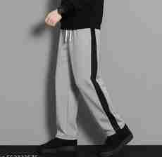 Men Striped Grey Track Pants