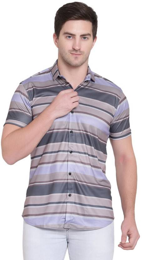 SDFDS Men Regular Fit Striped Button Down Collar Casual Shirt