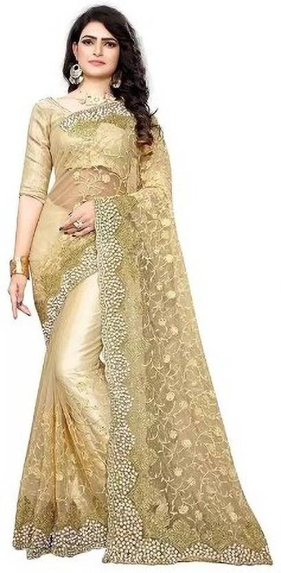 Solid/Plain Bandhani Cotton Blend Saree (Gold)