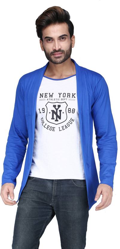 Full Sleeve Cotton White Printed round neck T.Shirt with Royal Blue Jacket Shrug .You can wear this t-shirt for any casual and festive purpose.Light weight fabric sweeps sweat away from your skin.This T-shirt will be comfortable all day long.Look smart and comfortable by wearing this T-shirt.Easy to clean and maintain.