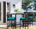 SE FURNITURE Outdoor Bar Table and Chair Set is designed to elevate your outdoor space with its stylish and contemporary design. Perfect for your garden, patio, or balcony, this set includes a sleek rattan bar table and four comfortable barstools with vibrant cushioned seats in a striking turquoise color. Whether you're hosting an outdoor gathering, enjoying drinks with friends, or just relaxing in the sun, this bar set combines comfort and modern aesthetics to create an inviting outdoor experience.