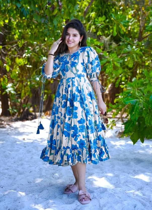 SEAKART Women Printed Anarkali Kurta (Blue)