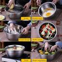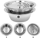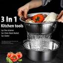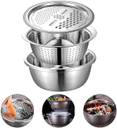 The upper drainage basin and the lower large capacity basin are convenient for cleaning fruits and vegetables, avoiding dripping onto the table, which is very suitable for tightening pasta, rice, etc. The filter set includes, a fine filter screen, a basin and a shredding and peeling machine. Three in one kitchen spoon and bowl set. Use it to wash, rinse, chop. Good kitchen helper, can be used for most fruits, vegetables, food. Easy to grasp the round edge, you can better grasp. The flat floor design has excellent stability. When not in use, you can stack kitchen filters and salad bowls to save more space. The well-designed drainage holes make cleaning easier and save trouble. Anything you can think of in the kitchen can be cleaned, and he can do it for you with satisfaction. Solve your worries of repeatedly pouring water during cleaning, saving you more time. The excellent stainless steel material allows you to place or clean vegetables or knead the dough, and it can also meet your heating needs, boiling soup and noodles. The high-quality materials allow you not to worry about damage and loss, and he can accompany the family intimately for a long, long time.