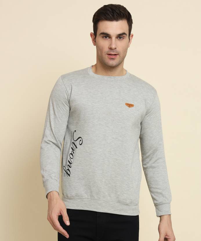 SEASER Solid Round Neck Casual Men Grey Sweater