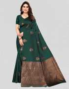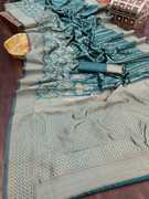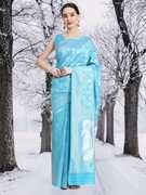 WOMENELEGENCE is now coming up with New colour Design pure soft lichi silk silver jari All over the body With heavy Jaquard border.with beautiful Trendy and grand rich pallu. With Beautiful weaving Jaquard border and full body butti Blouse piece.Saree features bright and traditional look, light weight, easy to drape.