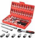 13 Pieces 1/4 inch DR Sockets: 4, 5, 5, 5, 6, 7, 8, 9, 10, 11, 12, 13, 14 mm and 1 Piece 1/4 inch DR Bit Adaptor 21 Pieces 1/4 inch DR Bit Sockets: FD4, 5, 7 PH1, 2, 3 PZ1, 2, 3 HW3, 4, 5, 6, 7, 8 T10, 15, 20, 25, 30, 40; 3 Pieces Hex Key Wrenches: 5, 2, 5 mm 1 Piece 1/4 inch DR universal joint and 1 piece 1/4 inch DR sliding T bar 2 Pieces 1/4 inch DR Extension Bars: 2 inch and 4 inch; 1 piece 1/4 inch DR quick ratchet handle 1 Piece 1/4 inch DR Flexible Extension: 6 inch; 1 Piece 1/4 inch DR Spinner Handle: 6 inch