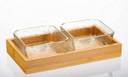 SEASPIRIT Glass Serving Bowl Gold Rim Wooden Tray 4 INCH | Serving Dry Fruit Bowl for Home Decoration | Bowl for Dining Table Fancy Serving Bowl & Tray (2 Bowl & 1 Tray) Bowl, Tray Serving Set (Pack of 2)