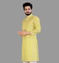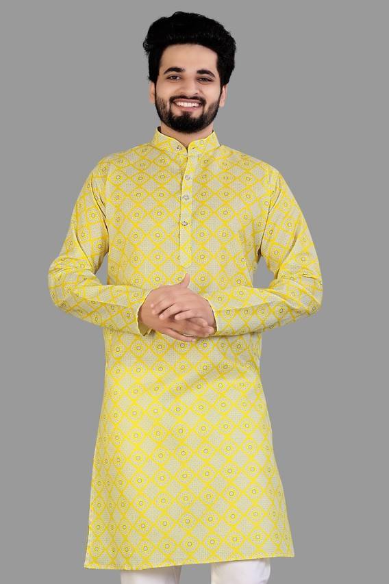 seawind Men Printed Straight Kurta (Yellow, White)