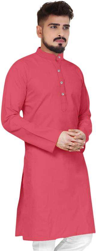 seawind Men Solid Cotton Blend Straight Kurta  (Pink)