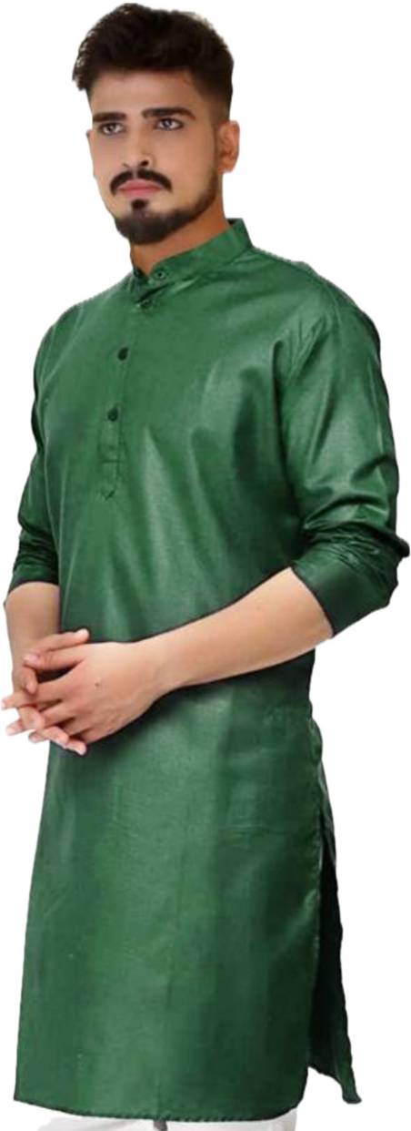 The Fashion Outlets Men Solid A-line Kurta (Green)