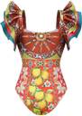 Brown lemon monokini Geometric Print Women Monokini Multicolor Swimsuit