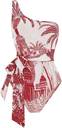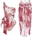 This women's simple style elegant red and white one piece swimwear is perfect for a day at the beach or pool. The included sarong/cover up adds a touch of sophistication and versatility. Made with high-quality materials, this swimwear is comfortable and stylish.