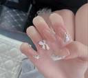 SECRET LIVES Designer artifical reuseable extension beautiful fake nails Baby Pink Studded 3D Bow with glue sheet convinent than manicure (Pack of 24)