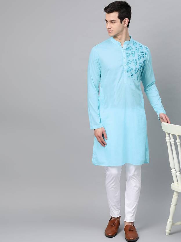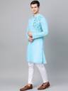 See Designs Men Embroidered Straight Kurta (Light Blue)