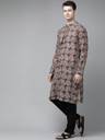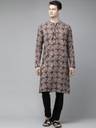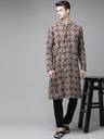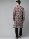 Men Beige And Black Kalamkari Block Printed Straight Sustainable Kurta