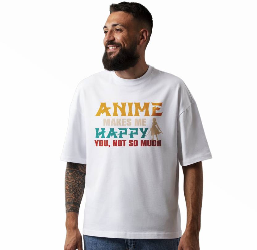 Get ready to showcase your love for anime with this eye-catching unisex oversized t-shirt featuring the bold statement "Anime Makes Me Happy, You Not So Much." Perfect for casual outings or comfy days at home, this tee boasts a relaxed fit and breathable fabric for ultimate comfort. Whether you're heading to a convention or just hanging out with friends, this shirt is sure to be a conversation starter and a staple in any anime fan's wardrobe.