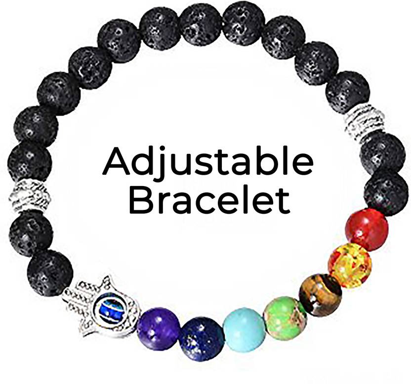 Seven Chakra Lava Stone with Hamsa Bracelet
