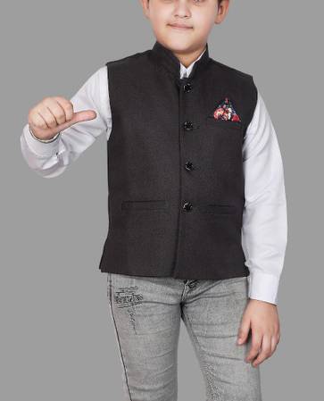 MG FAHION presents this black boys ethnic waistcoat to uplift the dressing sense of your kid. Suitable for party, wedding, festival, ceremony and occasions. We are a leading Brand in kids wear with wide range of kids clothing which includes kids ethnic, party and casual wear.