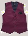 Elevate your little gentleman's style with our Kids Suiting Blend Waistcoat for Boys. This waistcoat is designed to add a touch of sophistication and charm to their formal outfits, making them look dashing on any occasion. Crafted with utmost care, this waistcoat features a premium suiting blend fabric that ensures comfort and durability. The blend of materials offers a perfect balance of softness and resilience, allowing your child to move freely without any discomfort. The waistcoat showcases a sleek and tailored design, complete with a classic V-neckline and a button-up front. It exudes a timeless elegance that effortlessly enhances any outfit. Whether it's a wedding, birthday party, or a special event, your little one will steal the show in this stylish piece. Versatility is key, and this waistcoat delivers just that. It can be easily paired with a dress shirt, trousers, and a bowtie for a complete formal look, or even dressed down with a casual shirt and jeans for a more relaxed yet refined style. We understand that kids grow fast, so we've designed this waistcoat with an adjustable back strap, ensuring a perfect fit every time. It is available in a range of sizes to accommodate various age groups, making it suitable for boys of all ages. Make a lasting impression with our Kids Suiting Blend Waistcoat for Boys. Order now and let your little one shine with confidence and style!