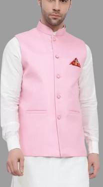 ATLY Waistcoat gives nothing less than a nawabi look. The mandarin collar is followed by front buttoned front closure. The designer buttons give a very royal look and one can wear this bandhgala on a crisp white shirt. A pocket square adds elegance to the overall assimilation of this look.