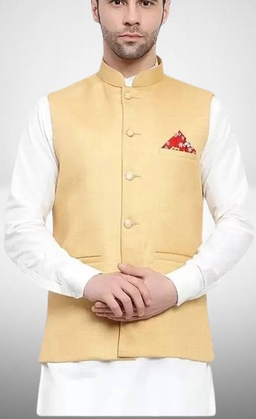 SEETOO Waistcoat gives nothing less than a nawabi look. The mandarin collar is followed by front buttoned front closure. The designer buttons give a very royal look and one can wear this bandhgala on a crisp white shirt. A pocket square adds elegance to the overall assimilation of this look.