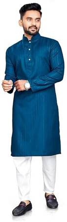 SEFRONI Men Solid Straight Kurta (Dark Blue)