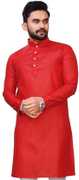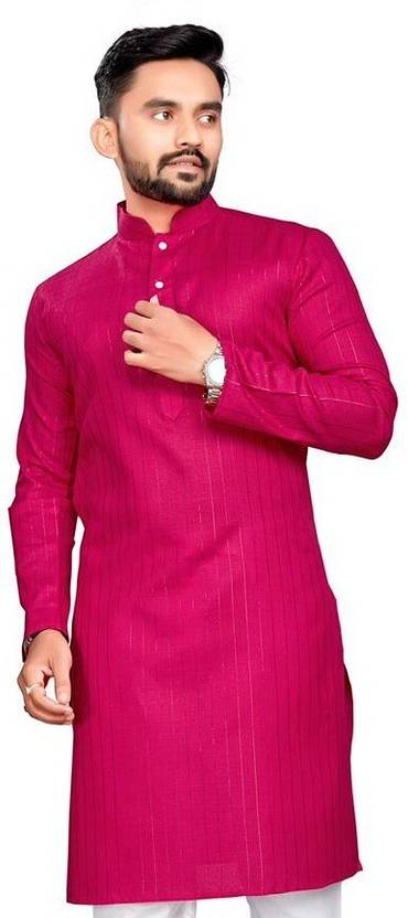 Vajira Fashion Men Solid Cotton Blend Straight Kurta  (Pink)