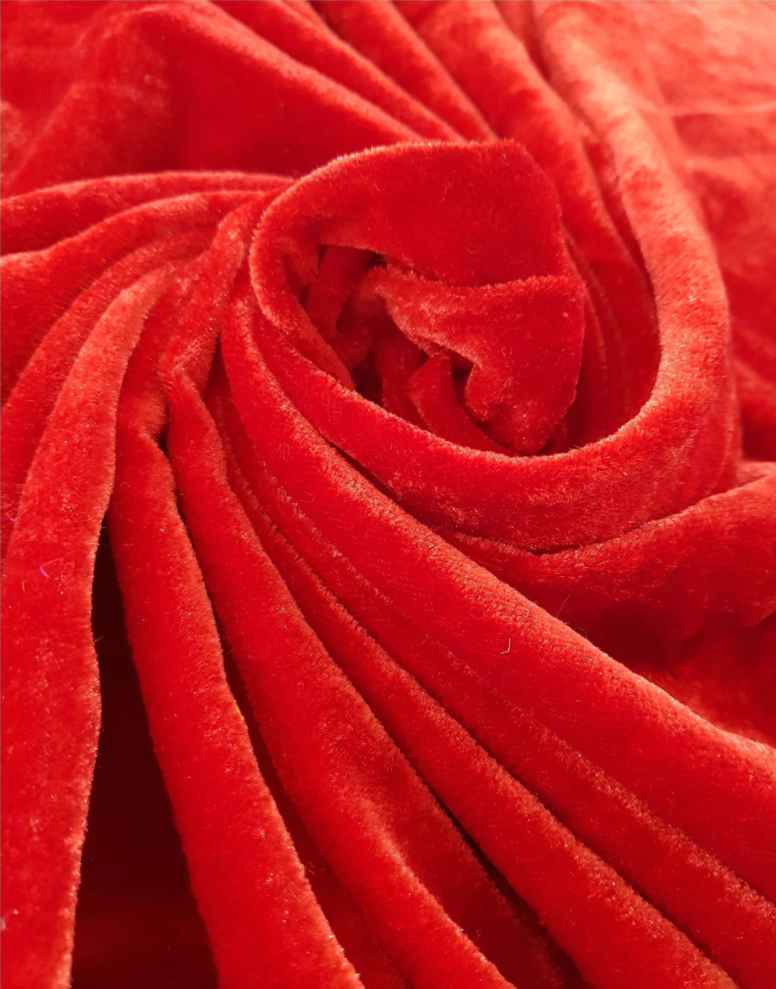 THIS IS VISCOSE VELVET FABRIC.This Velvet is a soft, luxurious fabric. Product Description: Presenting our industrial velvet fabric, colored in a bold and vibrant.This high-quality material showcases superior performance characteristics that distinguish it in the market.