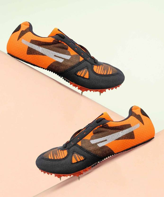 SEGA Original FLY - ATHLETIC SPIKES Running Shoes For Men (Orange, Black , 8)