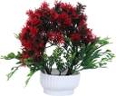 SEHAZ ARTWORKS Peacock-Feather-RED Bonsai Wild Artificial Plant with Pot (23 cm, Red)