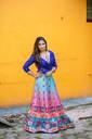 SEIKETSU Digital Print Semi Stitched Lehenga & Crop Top (Blue)