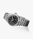 This Seiko 5 Sports ‘Deception’ field watch with its black dial and bezel takes the design to the next level, with a GMT function that allows you to track a second time zone. The black-coloured bezel features a 24-hour indication and a large, orange GMT hand for legibility. The base design and size remains the same as the original field watches, ensuring that the design style remains timeless whilst the calibre evolves. Whilst being a robust sports watch, this piece has a black calf leather strap.