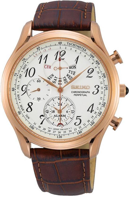 Seiko Discover More Collection Comes with Quartz Movement with Sapphire Crystal Glass White Round Dial with 40.6 mm Brown Color Genuine Leather Strap/Band Along with 2 Years Warranty Period