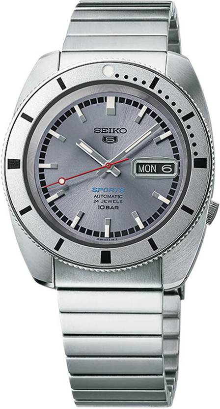 This is the second iteration of the original Seiko 5 Sports model, which was released in June 1968. With this ‘re-creation’, Seiko offers two colours for the dials that were popular at the time of the original release. The case has been recreated as faithfully as possible to achieve a size and shape that is almost identical to the original model. At the same time, the watch was modernised and the movement improved by inserting a 4R36 into the case. Details such as the shape of the horns and the size of the crown have been updated to reflect the need for practicality and comfort. The model adopts a robust stainless steel bracelet with a similar design to the original bracelet from the first collection. *Readoption’ of the bracelet of the Tribute model released in 2023 (SRPK17). The additional calfskin strap with racing-style perforations further enhances the retro look of the model.