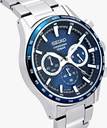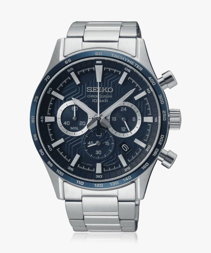 This SSB445P1 quartz watch from the Seiko SPORT collection is packed with features. Its dial features the three counters typical of chronographs and is surrounded by a tachymeter bezel. This all-stainless-steel model is also very solid, with its sapphire crystal, screw-down case back and water resistance to 100 meters.