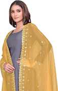 Upgrade your ethnic wardrobe with this Organza Embroidered Dupatta featuring delicate mirror work, sequence highlights, and floral butti patterns. Made from soft, lightweight organza, it drapes beautifully and adds effortless charm to your festive and party looks. The lace and tassel border enhances its designer appeal, making it perfect for weddings, celebrations, or traditional functions. Measuring 225 x 100 cm, this dupatta offers full coverage and styling flexibility. Pair it effortlessly with a kurta, choli, dress, or pants for a stunning appearance. With its elegant detailing and premium finish, this dupatta is a must-have for every festive occasion. Made in India, easy to maintain, and best washed gently without a brush. Available in multiple attractive color options (Black, White, Brown, Peach, Pink, Gold, Maroon, Red, Wine, White, Pista, Onion, Sky Blue, Lavender, Green).