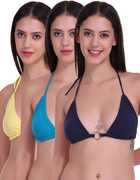 Selfcare Pack of 3 Womens Solid Non Padded Halter Neck Free Size Ring Bra-SN3050