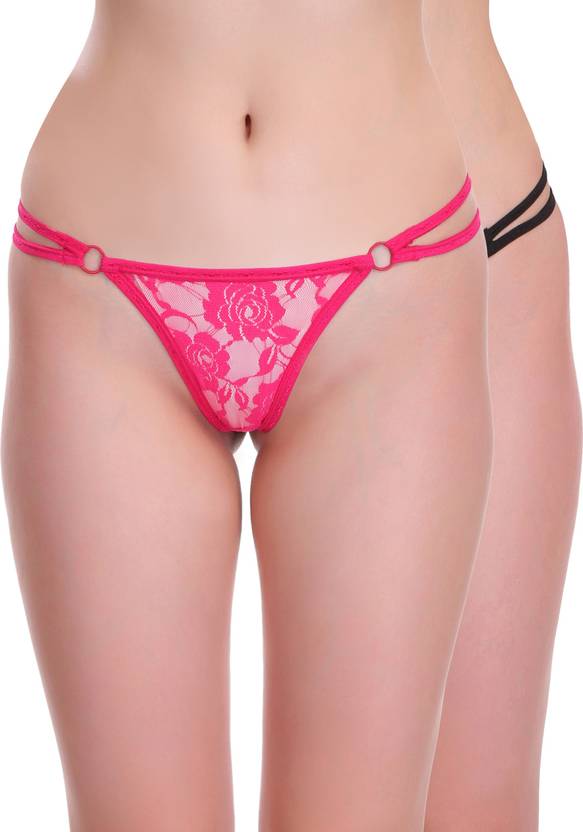 1 Pink Women's Thong Panty, 1 Black Women's Thong Panty