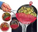 Better Strainer the expandable strainer fits any size pot, pan, skillet or bowl. Perfect straining pasta, grease from meats and juices from fruits and veggies. Better Strainer makes draining grease, cooking oil and water easy. No more bulky colanders. The secret is the "flex fit" design that grabs on and then locks tight to ensure a safe and secure pour every time. The non-stick surface won't tear delicate food like ravioli. Pull ring at en of silicon backwards and fix to opposite rim of pot.