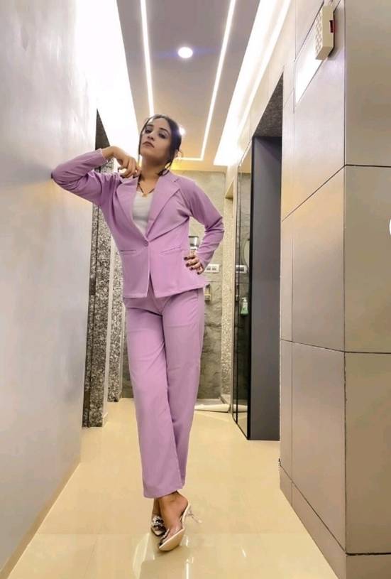 Coalesce urban charm and fashion wearing this Lavender Co-ord set from Selvia. Tailored to sartorial perfection from premium Lycra fabric, it assures a soft and soothing touch against the skin. The Pant has Full Elastic waistband, and the top has Spread Collar Neck with Full Sleeve Length, it is sure to fetch you compliments from all.