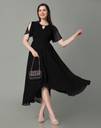 This Black Color Dress Having Dyed Work On Georgette Fabric. This Dress Having Keyhole Neck And Half Sleeve, Step Up Your Style Quotient By Wearing This Party Dress From Selvia.