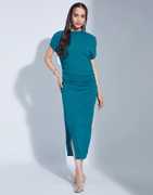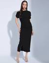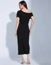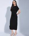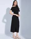 The Selvia Contemporary Bodycon Western Black Dress features a classic Dyed design in luxurious Lycra fabric. This must-have piece showcases a beautifully crafted Short Sleeve and a Round neckline, epitomizing timeless elegance.