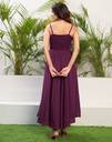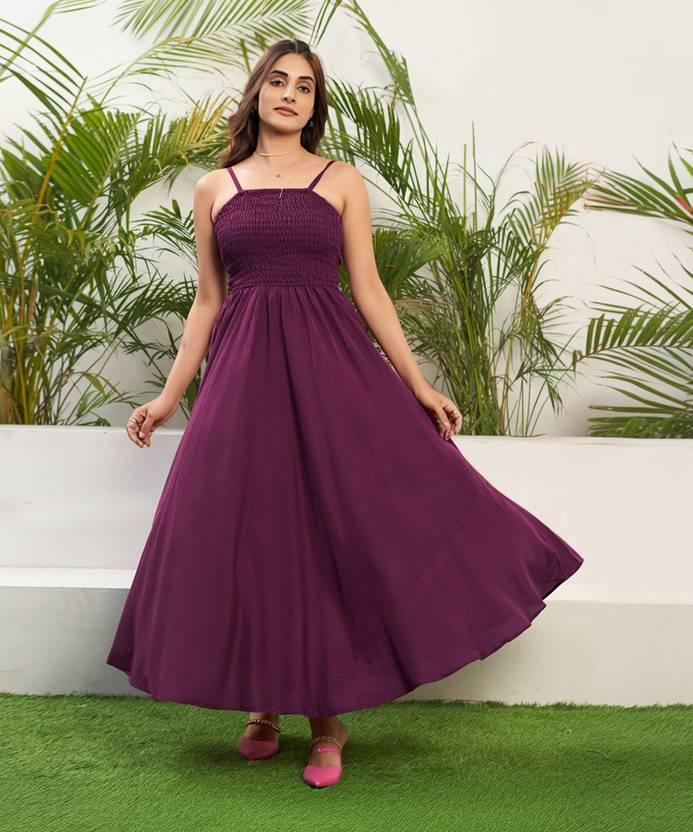Selvia Contemporary Fit and Flare Type Western Wine Colour Dress With A Dyed, Smoking Design Classic Styles, Flared Hem, This Piece Is A Must-Have. It Has Beautifully Designed With Off Shoulder And A Lovely Sleeveless Design.