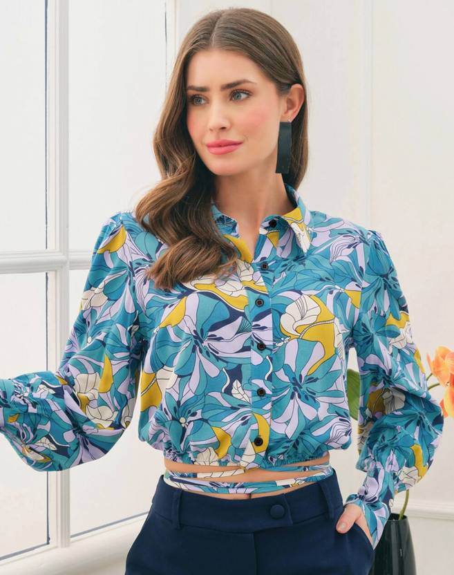 Selvia Blue, Turquoise, White Color Regular Fit Shirt for Woven, Hip length with Full Sleeve Casual Digital Printed shirt made in soft and comfortable Crepe Material.