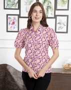 Selvia Light Pink, Purple Color Regular Fit Shirt for Women, Hip Length with Short Sleeve Casual Floral Printed Shirt made in soft and comfortable Cotton Slub Material.