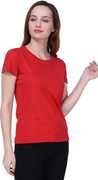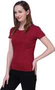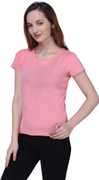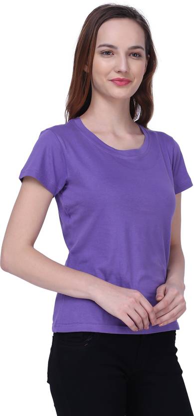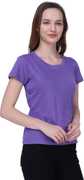 Semantic Solid Women Round Neck Purple T-Shirt