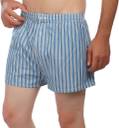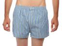 Blue and Grey striped Boxers with elastic waistband, fly and side-slits. 100% Comfort cotton Men's Boxer Shorts in contemporary prints/checks/stripe designs.