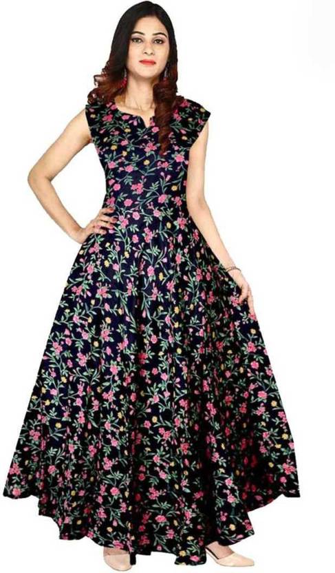 Women Printed Viscose Rayon Flared Kurta (Black)