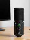 Compact capsule-shaped sturdy metal body cardioid directional USB microphone for distortion-free sound and very low self-noise, ideal for professional studio quality podcasting, streaming & broadcasting., It has: in-built mute-button with Green-Red coloured LED dial indicator; dynamic online feedback headphone-monitor jack-port (3.5mm); gain-pickup dial control knob; recording-device to mic feedback selection mixture knob; headphone-volume-control knob., Connects with smartphone, laptop, desktop, etc. through new generation plug-and-play USB-C port, comes with a smart tabletop stand & 1.2 Meter (4 Feet) USB-C cable., Designed in Germany